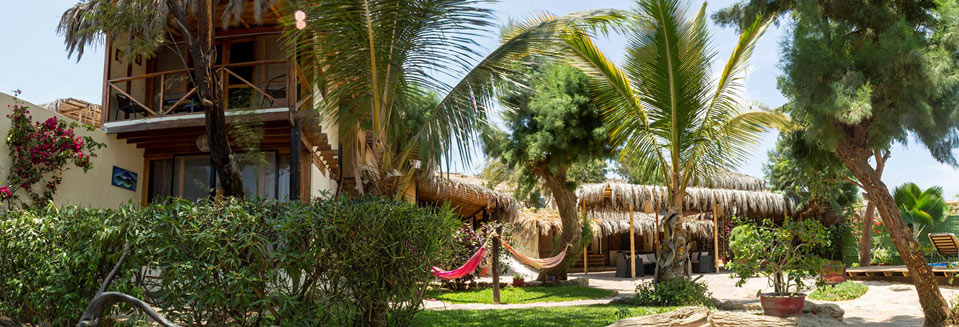 La casa cuenta con un amplio comedor y cocina equipada, buen internet WIFI para colegios y teletrabajo, Piscina frente al mar con poltronas y sillas de playa y dos salas de estar en medio de un espacioso jardín con árboles y hamacas .